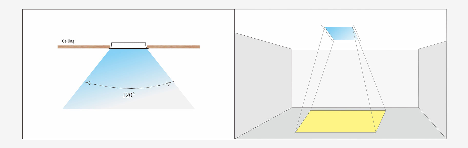 Ultracienka konstrukcja i szeroki kąt świecenia (120°), dająca równomierne, rozproszone światło.