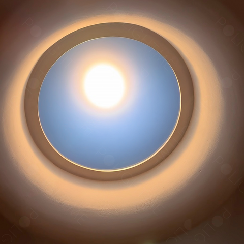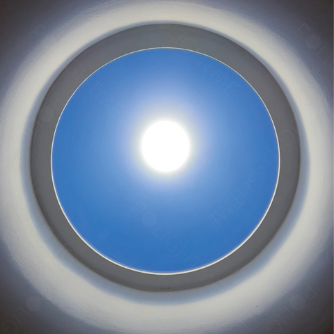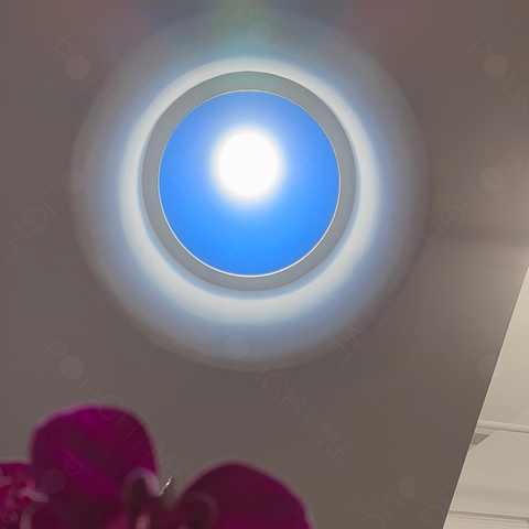 The T-Series (R300) model is our most advanced lighting system, delivering the most realistic impression of true sunlight. Against the backdrop of a blue sky, a distinct, warm spot of light appears, mimicking sunbeams entering the interior. This is a no-compromise solution for those who desire their private sun in its most spectacular form.