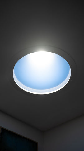 The T-Series model is our most advanced lighting system, delivering the most realistic impression of true sunlight. Against the backdrop of a blue sky, a distinct, warm spot of light appears, mimicking sunbeams entering the interior. This is a no-compromise solution for those who desire their private sun in its most spectacular form.